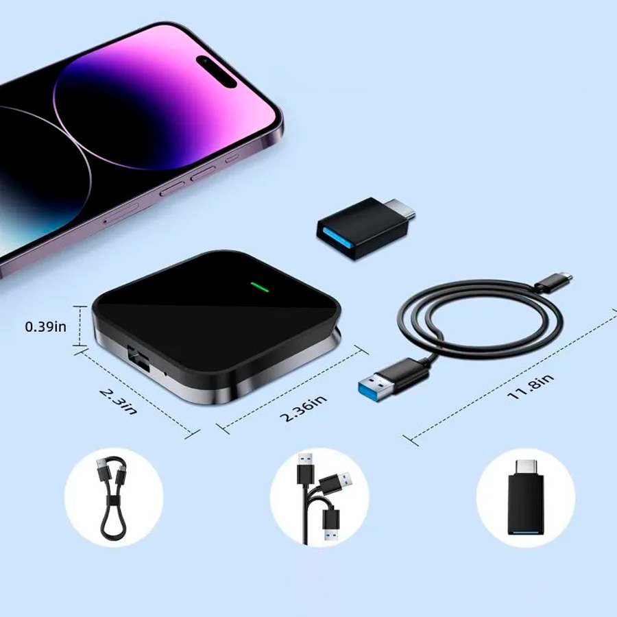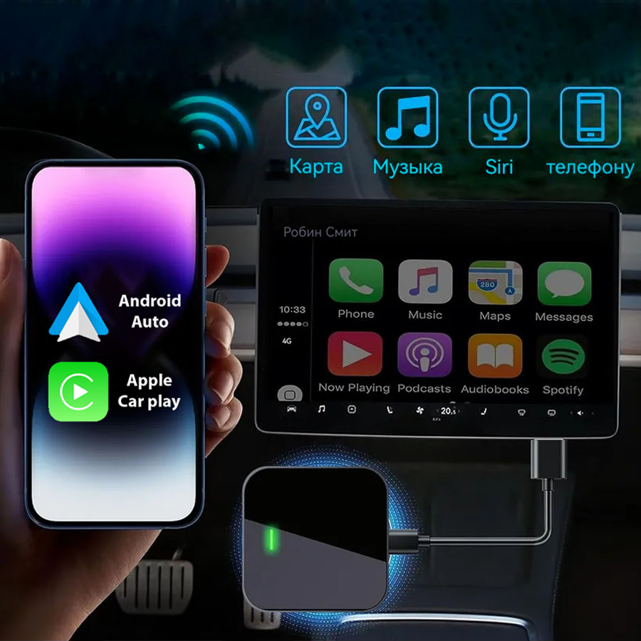 С помощью беспроводного адаптера CarPlay / AndroidAuto вы навсегда избавитесь от проводов и сохраните порядок в салоне автомобиля.