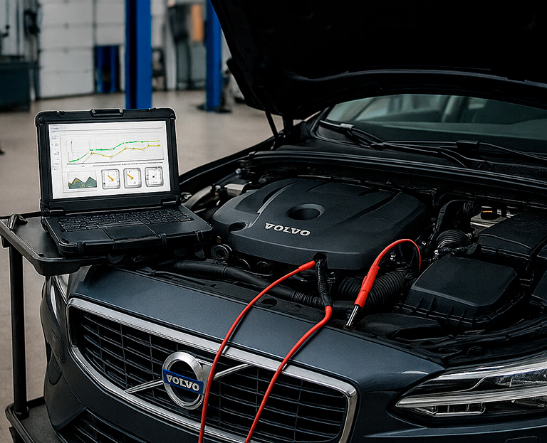 Мы используем оригинальное дилерское оборудование VIDA/DiCE и профессиональные инструменты – точно такое же, как у официальных дилеров Volvo. Полная проверка занимает 1,5 — 2 часа и включает: